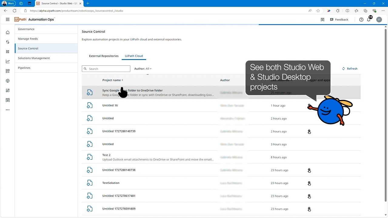 For administrators, we also cover the ability to access all organization projects via the Source Control section, including Studio desktop projects, and how to open and view them in Admin Read only mode. Enhance your project management skills and gain insights into the comprehensive oversight features available in the Automation OPS platform.