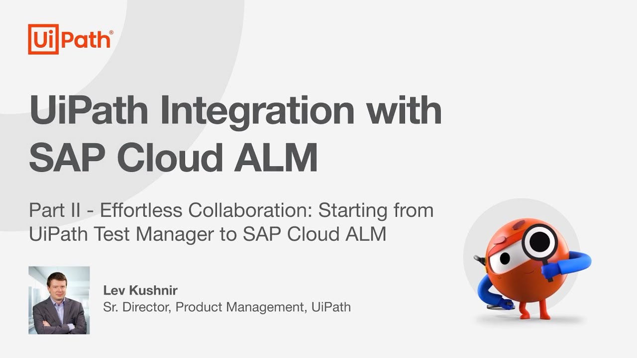 Explore how UiPath Test Manager integrates effortlessly with SAP Cloud ALM to support your testing and automation needs! In this video, learn how to initiate test cases creation from UiPath Test Manager, track results, and synchronize effortlessly with SAP Cloud ALM.